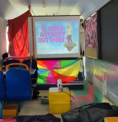 A film screening and fundraiser of Is There Anybody Out There? in Eastbourne on a sensory bus, raising money for Defiant Sports to help them build the first fully accessible sports centre in Sussex.